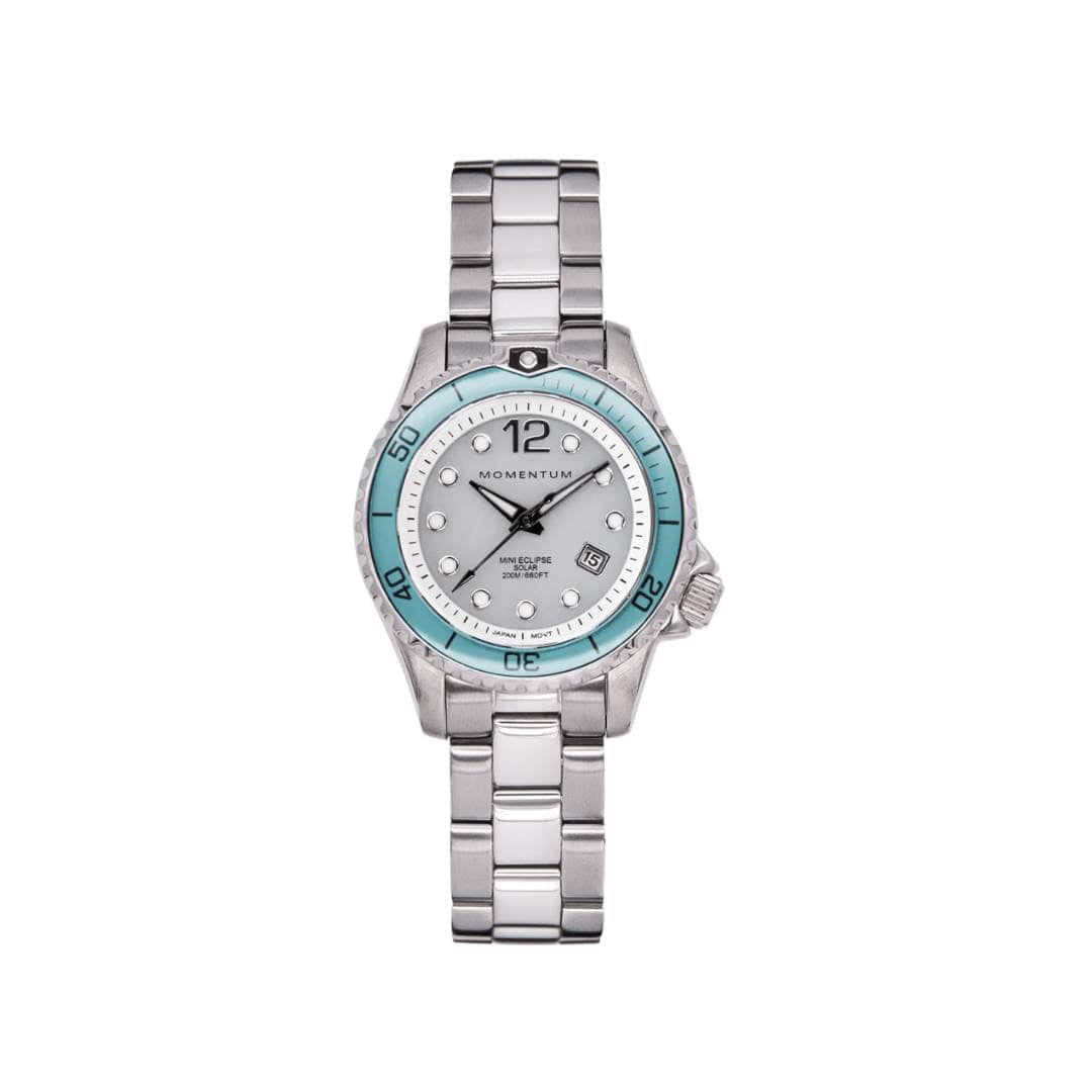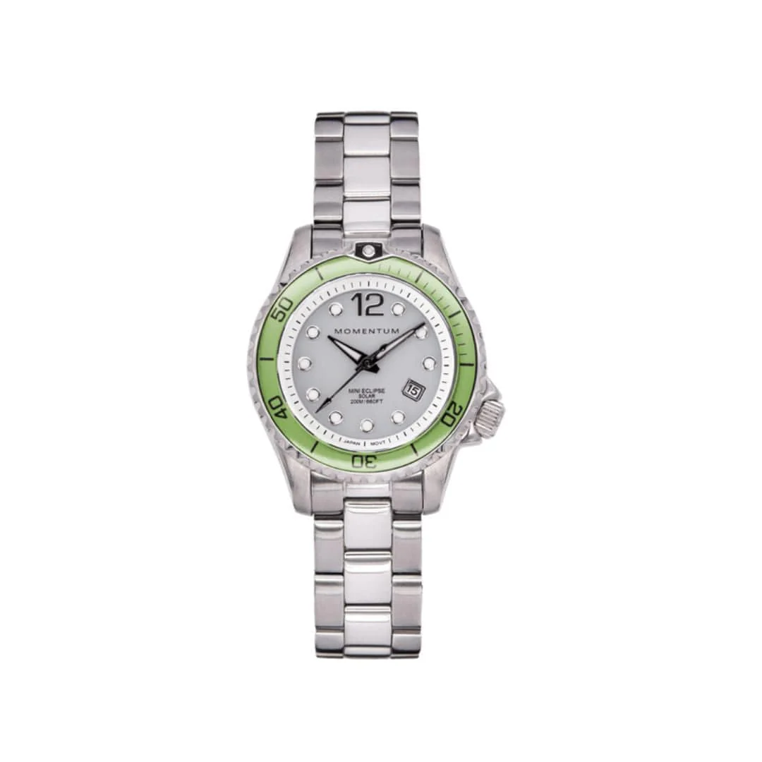 • القرص (الوجه): يأتي القرص بلون فضي فاتح مع علامات للساعات وأرقام كبيرة عند موضع 12، 3، 6، و9. يوجد أيضًا نافذة لعرض التاريخ.